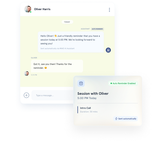 MWO is built for therapists, coaches, psychologists, counsellors, and other wellness professionals who want to simplify operations and grow their practice.