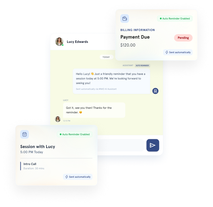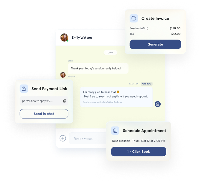 MWO is built for therapists, coaches, psychologists, counsellors, and other wellness professionals who want to simplify operations and grow their practice.