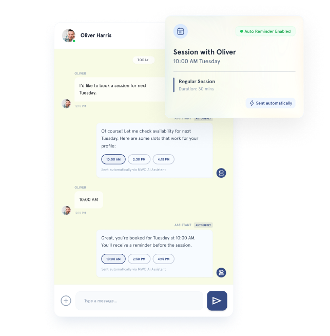Let AI handle common questions, booking requests, and appointment changes automatically — so clients get instant responses, even when you’re unavailable.