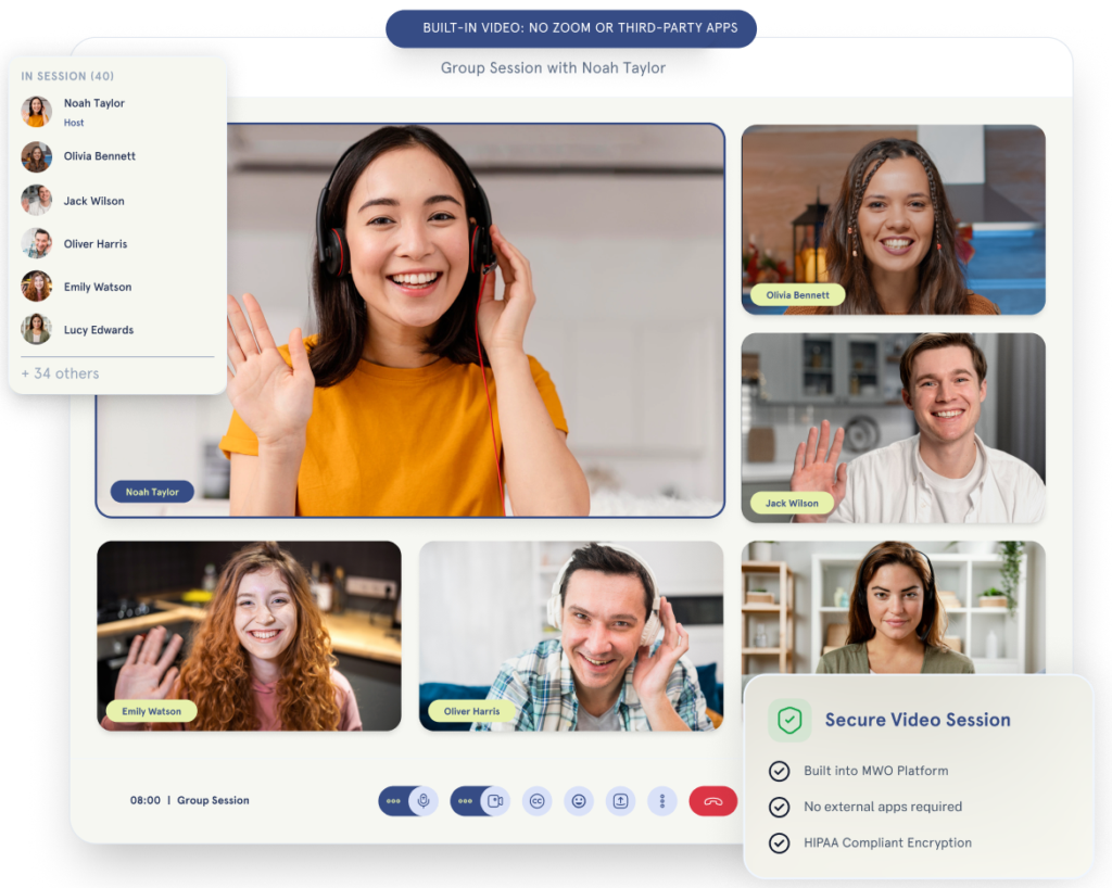 Host individual or group video calls, manage notes and payments — all in one place. Simplify your virtual practice