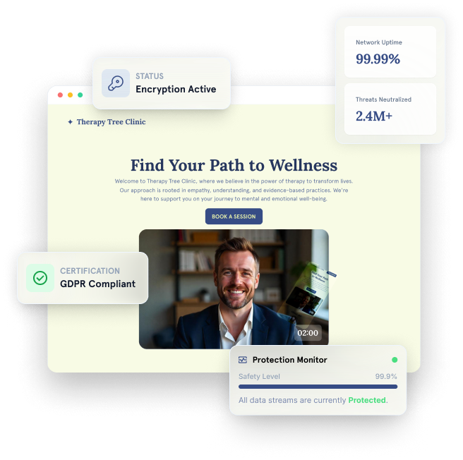 Protecting your clients’ privacy is our top priority. Every website built on MWO is encrypted, GDPR-compliant, and hosted on secure, privacy-first infrastructure — so you can focus on running your practice with complete confidence.