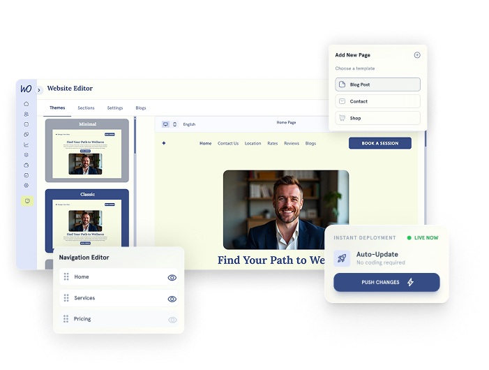 MWO is an all-in-one platform that helps wellness professionals manage their entire practice — from building a website, bookings, client management, to notes and client communication — in one simple platform.